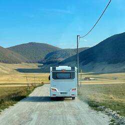 Sind dann weiter zur Ausgrabungsstätte der römischen Stadt Peltuinum bei Castelnuovo. Hier wollen wir übernachten. Erstmal unten geparkt, waren nicht sicher, ob man oben stehen kann. Eine erste Czytaj więcej
