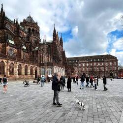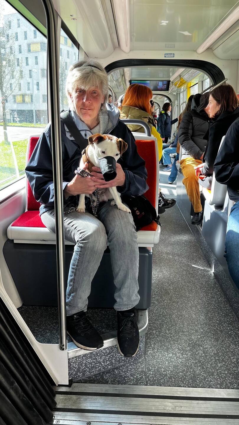 Heute Ausflug mit der Straßenbahn nach Straßburg. Mit Maulkorb für Hundies, das war ja wieder aufregend. Quentin nur am quietschen und Louie am zittern. Ich wusste gar nicht, dass der Ringelschwanz doch auch nach unten eingeklemmt werden kann…