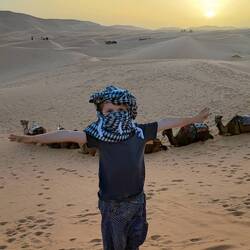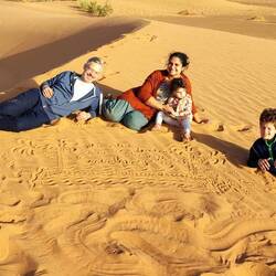 Jetzt sind wir im Berbercamp angekommen und haben ein Berber-Essen genossen. Ich allein im Zelt mit Neyla und die Jungs draußen. Anschließend wurde getrommelt und getanzt am Feuer.