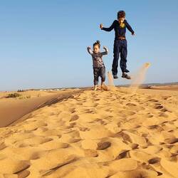 Leo und ich sind 7 Uhr morgens auf die nächste Düne gegangen und haben den Sonnenaufgang bestaunt... ein riesiger Feuerball kam zum Vorschein. Anschließend Frühstück und dann haben wir unsRead more