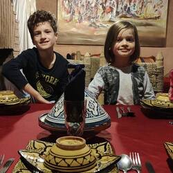 Nach ca. 1 Stunde Fahrt von Casablanca nach Rabat, waren wir im Carrefour um unseren Wasservorrat aufzufüllen und danach Tajine, Pastille und Kebab auf der Dachterrasse zu essen. Es war sehr lecker...