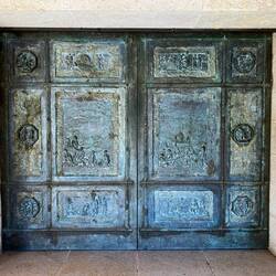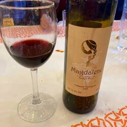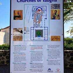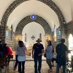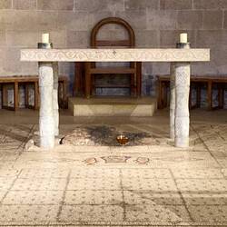 TravelerThere is a limestone rock and a mosaic of loaves and fishes. I am not sure of the dishware under there. From wiki: Under the altar is a block of limestone found during excavation, that is venerated as the stone on which the miraculous meal was laid.