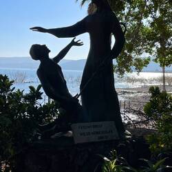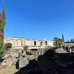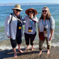 Church of the Beatitudes, sailing on the sea, communion on the boat, Capernaum — Peter’s house and synagogue — Church of the Multiplication, wading in the water