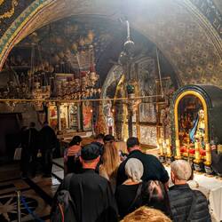 We prayed in the Church of the Holy Sepulcher, which contains both Golgotha and the empty tomb of Christ. It also contains six different Christian traditions.