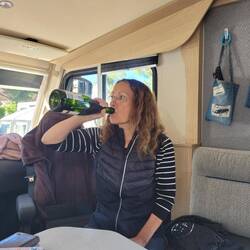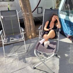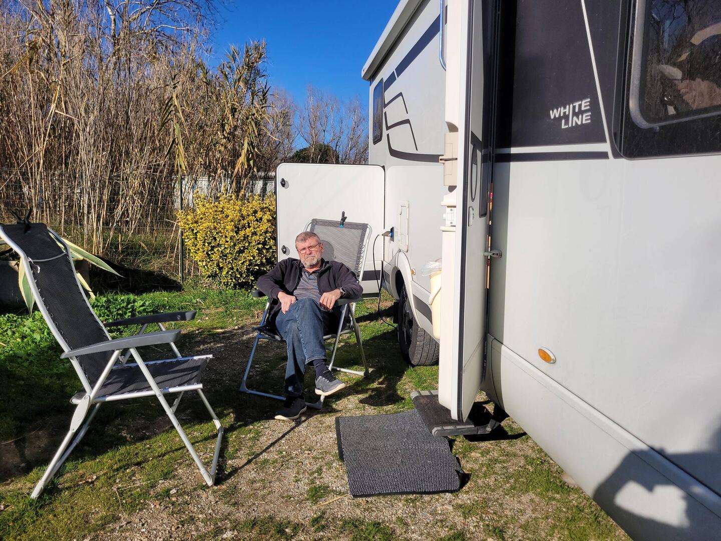 Endlich Sonne. Sitzen am 26.12. vor dem WoMo und genießen die Wärme.