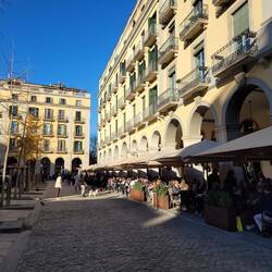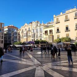 Tolle Stadt, super Wetter. Die Leute sitzen draußen in der Sonne. Winter in Spanien.