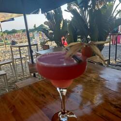 Den Tag verbringen wir mit Sonnen, im Meer baden, lesen, chillen... Gegen Abend holen wir uns bei Andy's Beachbar Essen und probieren mal eben einen Porn Star Martini 😜