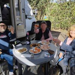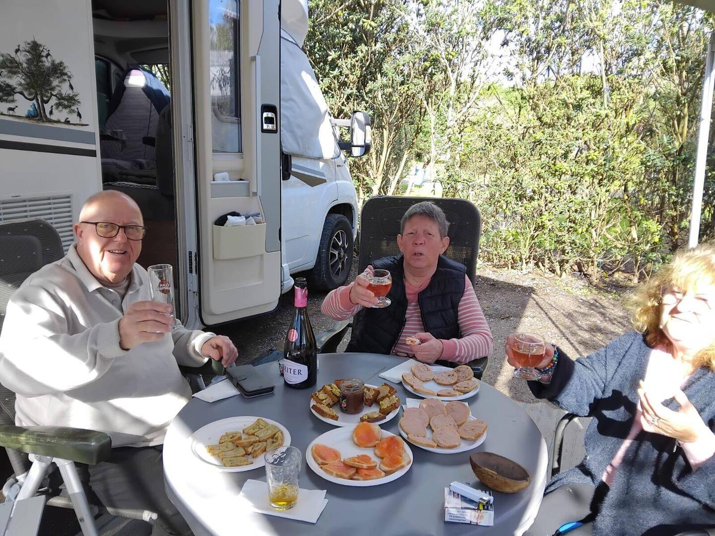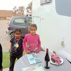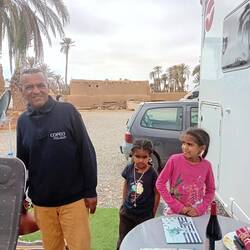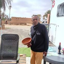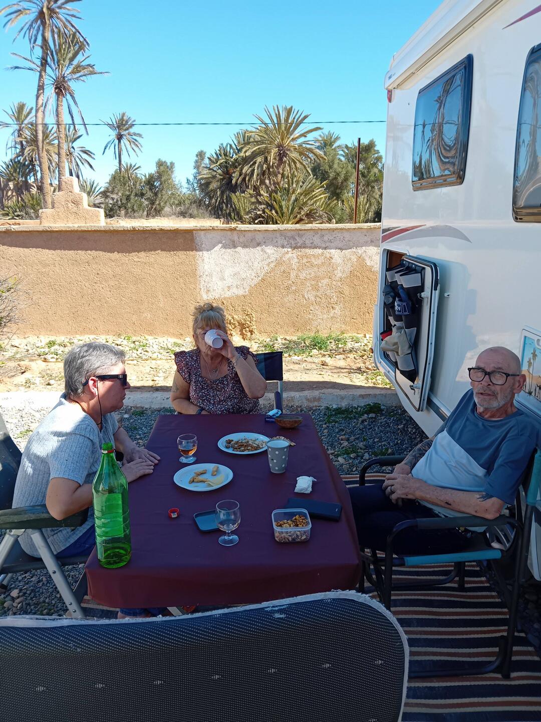 Nous arrivons à Guelmin avec, enfin, le soleil et une température de 27° . Une fois installé, un petit apéro.