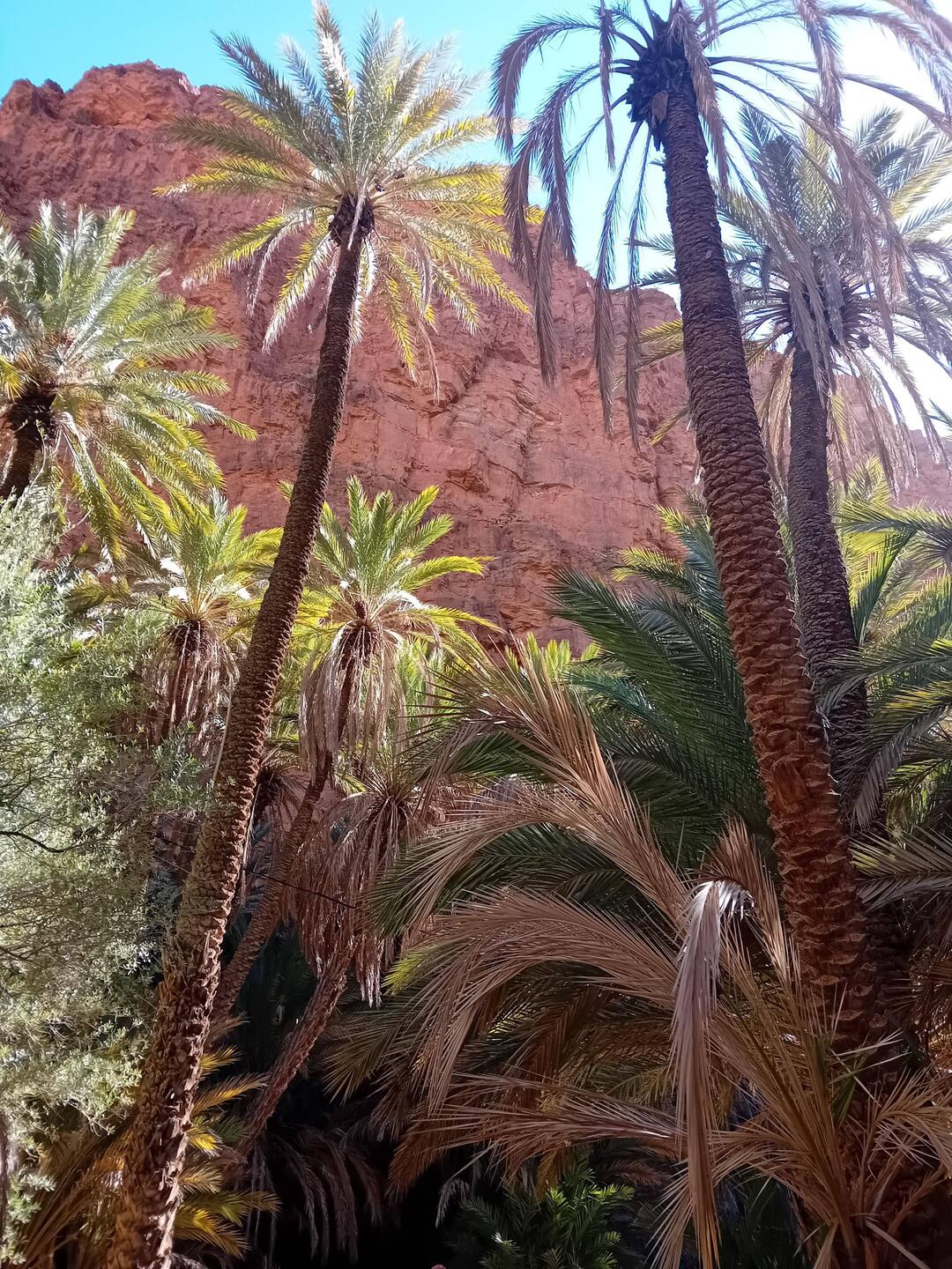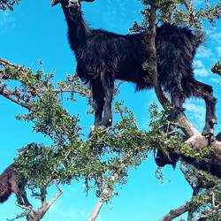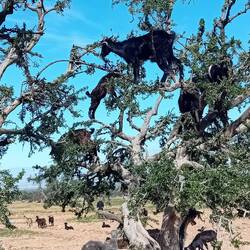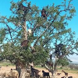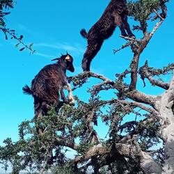 Aujourd'hui, balade à la palmeraie de Tioute. En route, nous avons eu la chance de voir des chèvres dans les arbres.