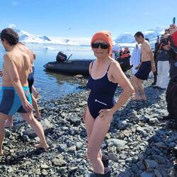 Heute morgen ging fuhren wir mit den Schlauchbooten ans Festland, wo wir Weddenroppen, 🐧 🐧, Wale und Leopardenseale sahen. Und dann ging es ab ins kalte Wasser, wo viele ihren Spaß hatten. WennOkumaya devam et