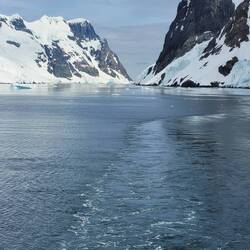 Die Lemaire Kanal ist 400 Meter breit. Recht und links steile Felsen. Oft ist er mit Eis bedeckt und die Schiffe können nicht durch fahren.