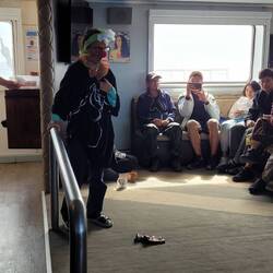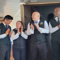 Ausser dem feinem Essen und ein Glas Wein, gab es die Übergabe des Zertifikate durch den Kapitän mit viel 👏 👏. Dann Auswertung des Fotowettbewerbs: ich gewann den 1. PREIS. 🤗🥰, ein Filzpinguin.