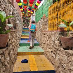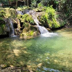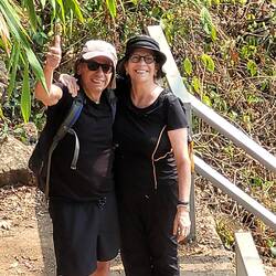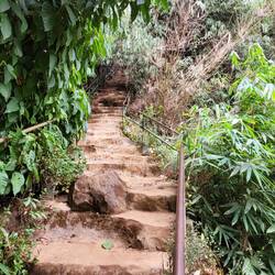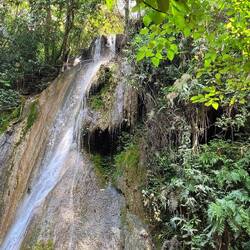 Trotz Regen den Berg hoch gestiegen um die Aussicht zu genießen. Das Runterlaufen war schwierig wegen den nassen, glitschigen Steinen. Anschließend Abkühlung in der Lagune.