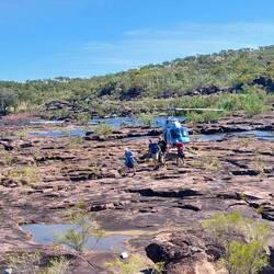 Ein schöner Tag zum Wandern, bei 34 Grad , kein Schatten, zu den Bungel Bungel, einer Felsformation, darauf zurück ins Camp.