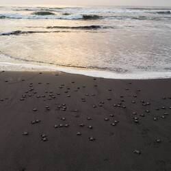 In El Paredón legen viele Schildkröten ihre Eier. Ein Verein vor Ort sammelt diese ein und lässt die Schildkröten in einem Gehege schlüpfen. Wir standen um 5.30 Uhr auf, um bei der Freilassung der Tortugas dabei zu sein. Das war ein tolles Erlebnis, den frischgeschlüpften Tierchen bei ihrem ersten Gang ins Meer zuzuschauen. Gleichzeitig konnten wir den wunderschönen Sonnenaufgang bestaunen.