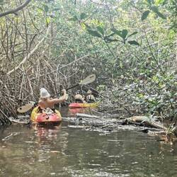 Bei einer Kayaktour durch die Mangroven sahen wir noch Wasserschildkröten, Pelikane und Vieraugenfische.