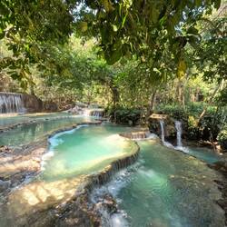 Luang Prabang war sicher bis jetzt ein Highlight unter den Städten. Wir fuhren mit dem Töffli durch die Gegend (diesmal zu zweit 😌), assen sehr leckere laotische Gerichte und genossen die entspannte Atmosphäre dieses grünen Städtchens. Der Kuang Si Wasserfall ist einer der schönsten Wasserfälle, den wir je gesehen haben. Er beeindruckt mit seinen mehrstufigen Pools und seinem ca. 60m hohen Hauptwasserfall.