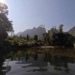 Vang Vieng kommt von der Stadt her zwar nicht an Luang Prabang ran, die Umgebung und die Natur sind dagegen traumhaft! Wir wanderten auf die steilen Berge hoch zu Aussichtspunkten, fuhren mit dem Kayak den Fluss hinunter und übten uns im Klettern. 🧗