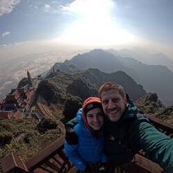 Mit einer dieser H'Mong-Frauen und ihrem Ehemann bestiegen wir den höchsten Berg Indochinas, den Fansipan Mountain (fancy pants) auf 3100 m.ü.M. ⛰️ Die wunderschöne Aussicht und die faszinierende Tempelanlage auf dem Gipfel liessen uns die schlechte Organisation dieses zweitätigen Trekkings wieder vergessen 😅.