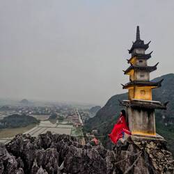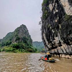 Ähnlich wie auf Cat Ba ragen auch in Tam Coc mächtige Kalksteinberge in die Höhe, diesmal nicht aus dem Meer, sondern zwischen malerischen Reisfeldern und stillen Flüssen. Die beeindruckende Landschaft diente 2017 als Filmset für den Kingkong-Film "Skull Island". 🦍
