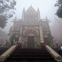 Zwei Tage verbrachten wir noch in Da Nang, etwa eine Stunde von Hoi An entfernt. Von dort aus besuchten wir "Sun World", ein riesiger Themenpark, zu dem man mit einem modernen Bähnli hinkommt. Hauptattraktion war die Golden Bridge, die von zwei Händen "getragen" wird. Leider machte uns der dichte Nebel einen grossen Strich durch die Rechnung, sodass wir die Attraktionen nur erahnen konnten 😅. Es war wieder mal faszinierend, was hier oben alles gebaut wurde. Ein Vergnügungspark mit Achterbahnen, einem Wachsmuseum, ein Labyrinth, Kinos, mehrere Schlösser, ein nachgebildetes französisches Dorf, Gärten, in denen französische Chansons liefen und dutzende Restaurants und Souvenirshops. Beeindruckend und gleichzeitig etwas verwirrend.. 😅