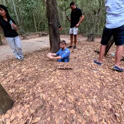 Auf einem Ausflug zu den Cu Chi Tunnels lernten wir, wie sich Guerillakämpfer während des Vietnamkriegs organisierten. Sie versteckten sich in einem riesigen Tunnelsystem vor den Amerikanern, nur 2 Stunden von Saigon entfernt. Die Tunnels führen zum Teil bis zu 12m unter die Erde und sind an manchen Stellen nur 90cm hoch. Die Vietkong richteten hier Räume für strategische Meetings sowie Küchen, Spitäler und Schulen ein und es wurden sogar Babies in diesen unterirdischen Gängen geboren. 😱