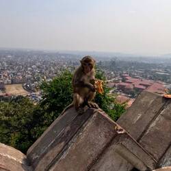 Noch keine 24 Stunden in Nepal und schon wurde ich von einem Affen angegriffen 😱. Zum Glück hat er nur meinen Schuh erwischt, als er versuchte, mich zu beissen. Der "monkey temple" war auch die einzige Attraktion, die wir in Kathmandu besichtigten. Den Rest der Zeit bereiteten wir uns auf unser bevorstehendes Trekking vor. In 12 Tagen wollen wir einmal den achthöchsten Berg der Welt, den Manaslu umrunden. Die Wanderung beginnt auf 700 M. ü. M., höchster Punkt ist der Larke La Pass auf 5'100 Metern.