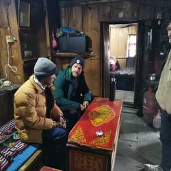 Am Morgen hätte man die schönste Aussicht auf den Manalsu. Um 6 Uhr stiegen wir voller Hoffnung auf gutes Wetter aus dem Bett. Und da war er: Der Gipfel des 8. höchsten Bergs der Welt leuchtete zuerst orange, dann gelb und schliesslich erwärmte die Sonne das gesamte Tal. Den Morgen nutzten wir, um das nahegelegene Kloster zu besuchen, das gleichzeitig als eine Art Altersheim fungiert. Der verantwortliche Lama lud uns zuerst zum Tee trinken ein - tibetischer Tee, schmeckt nach Bouillon mit viel Butter drin 😣 - zeigte uns den Gebetstempel sowie die Bibliothek und gab uns eine Unterrichtsstunde in Meditation.