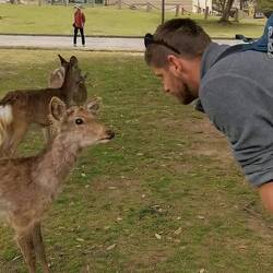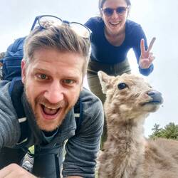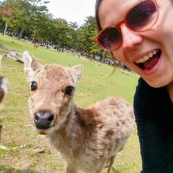 Den Tag verbrachten wir im Park, wo wir wilde Rehe streichelten und fütterten. Wer von uns hat wohl die Challenge gewonnen, das beste Selfie mit einem Reh zu machen? 🤔 Der Park hatte aber noch mehr zu bieten: Schreine, Tempel und der schönste japanische Garten, den wir bisher gesehen haben.