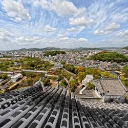 In Himeji besuchten wir das mächtige Schloss Himeji-jo, das über der Stadt wacht. Die Burg mit ihren markanten weissen Mauern ist eines der ältesten erhaltenen Bauwerke aus dem 17. Jahrhundert.