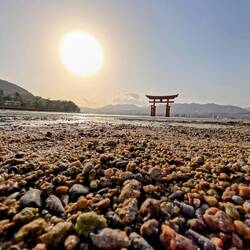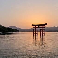 Nur rund eine halbe Stunde vom Stadtzentrum Hiroshimas entfernt liegt die Insel Miyajima, die für ihr gigantisches Torii-Tor bekannt ist, das auf dem Wasser zu schwimmen scheint. ⛩️ Hier gönnten wir uns den prächtigen Sonnenuntergang, bevor wir zurück in Hiroshima die hiesige Spezialität Okonomiyaki verköstigten: Pfannkuchen aus gebratenen Nudeln mit Ei, Käse, Speck und Chabis 😋.