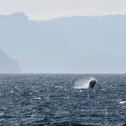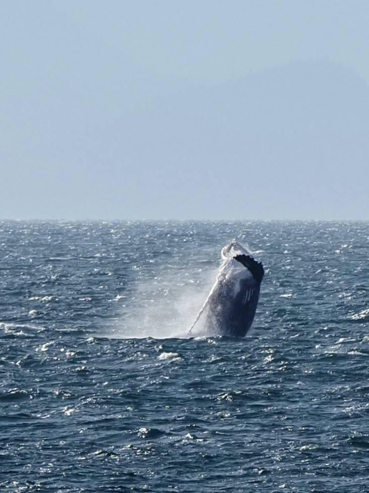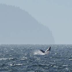 In the afternoon, we started making our way to Glacier Bay. Since you only get a permit for a specific day, they try to make the most of it by crossing into the park just after midnight and driving to the end overnight so we can work our way back slowly during the day. The path to get there took us through Icy Strait, which is known for its high concentration of whales. We hadn't been in the strait long before we saw a group of humpbacks breaching in the distance! Their activity shifted to mostly blow hole spouts as we got closer.