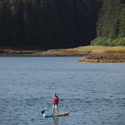 We also went out on the SUP after returning from kayaking. I wasn't making much forward progress with the wind, so I gave up quickly, but Keanan made it pretty far and laid down for a nap in the cove. We also jumped on the last zodiac excursion where I brought my big camera, but unfortunately, the bears were no longer hanging around.