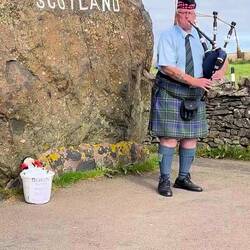 England begrüßt uns freundlich und bei strahlendem Sonnenschein fahren wir in den Hafen von Newcastle. Unser Bus bringt uns zur schottischen Grenze, wo uns ein Piper (Dudelsack-Spieler) begrüßt.Read more