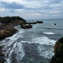 Heute schauen wir uns Biarritz an. Einen Parkplatz zu finden ist hier gar nicht so leicht, da wir entweder nur ein paar Zentimeter rechts und links übrig hatten um uns nicht die Spiegel abzufahrenBaca lagi