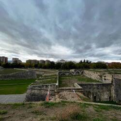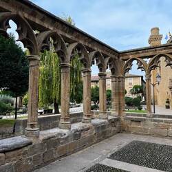 Heute besichtigen wir Pamplona. Die Altstadt liegt auf einem Berg, mitten in der Stadt. Um dort hinaufzukommen, hat man die Wahl aus einem Fußmarsch oder einem Fahrstuhl, der schräg den BergBaca lagi