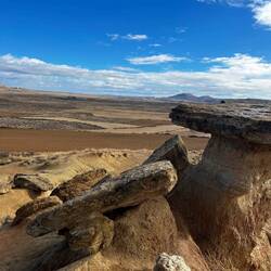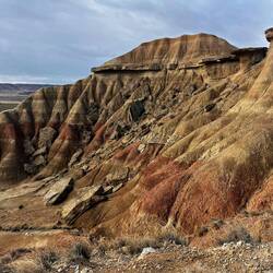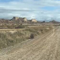 Unser heutiges Ziel ist die Halbwüste Bardenas Reales im Süden der spanischen Provinz Navarra. Der Weg durch die Wüste ist kaum befestigt und besteht aus groben Schotter. Die Landschaft ist sehrBaca lagi