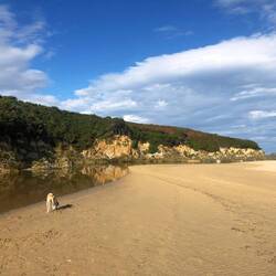 Unser nächster Platz liegt wieder direkt an einer Klippe mit atemberaubenden Ausblick. Nelly und Tobi machen sich auf den Weg einem schmalen Pfad der zum Strand führt hinunter zu kraxeln.Baca lagi