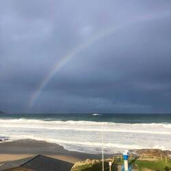 Wir stehen trotz schlechtem Wetter wieder direkt am Meer. Die Wellen schlagen vor uns mit voller Wucht gegen die Felsen und es regnet in einer Tour. Mitten in der Nacht bekommen wir beide eine ExtremBaca lagi