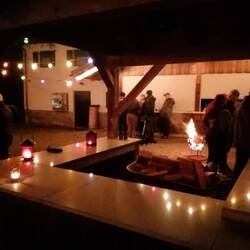 Eine tolle Idee. Offenes Feuer, knapp über 0°, ein sehr leckerer Glühwein, Weihnachtsmusik und nette Gespräche. Die Hunde waren mit und auch sehr brav. Ein gelungener Abend.