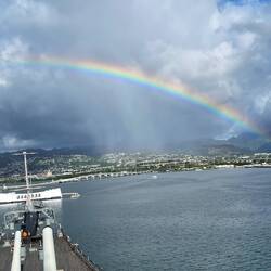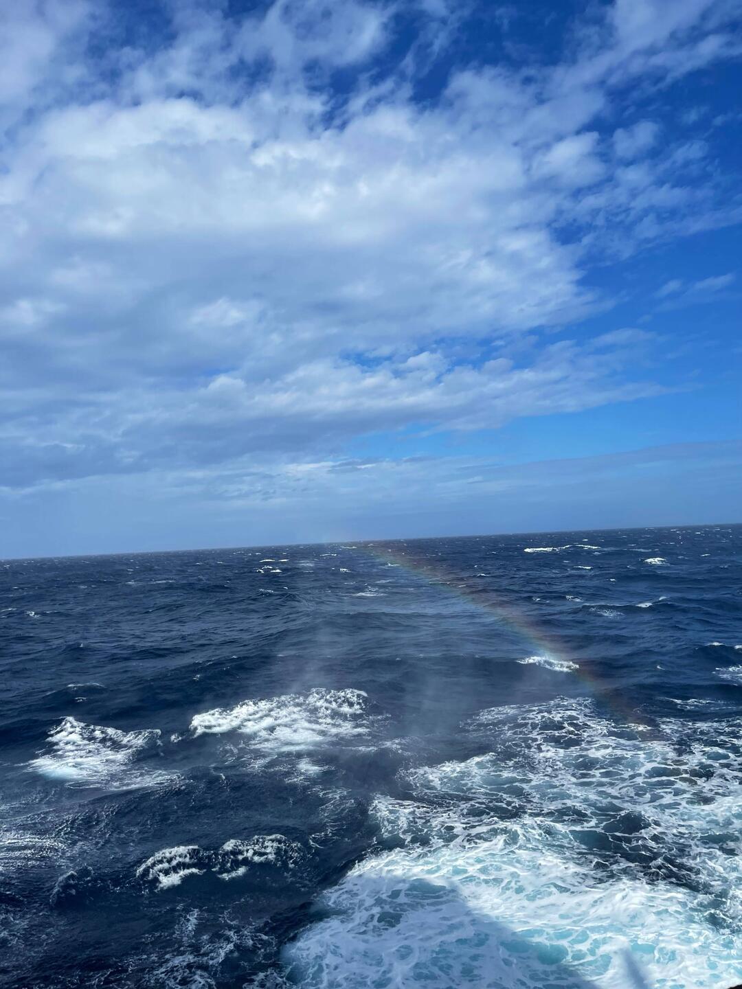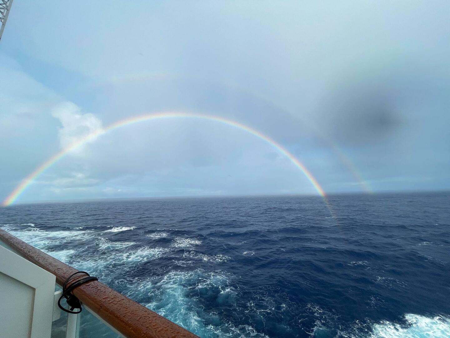 Heute wurden wir mit einem wunderschönen Regenbogen geweckt. Nach dem Sport ging es erst einmal zu einem ausgiebigen Frühstück. Als wir zurückkamen haben wir das von unserem Steward VictorLeggi altro