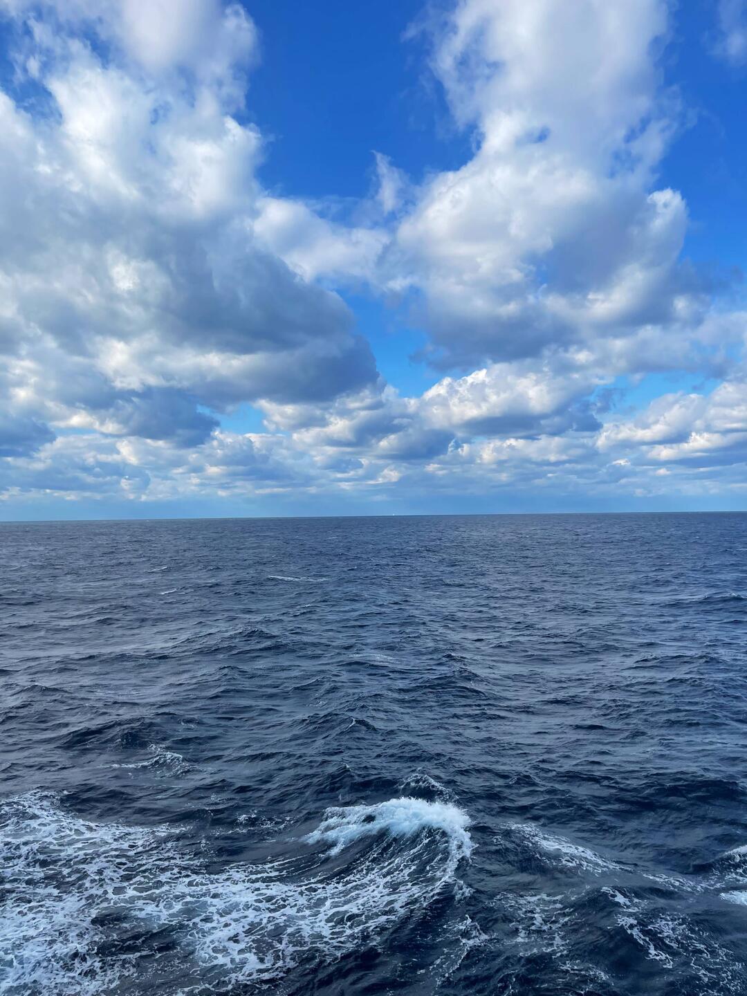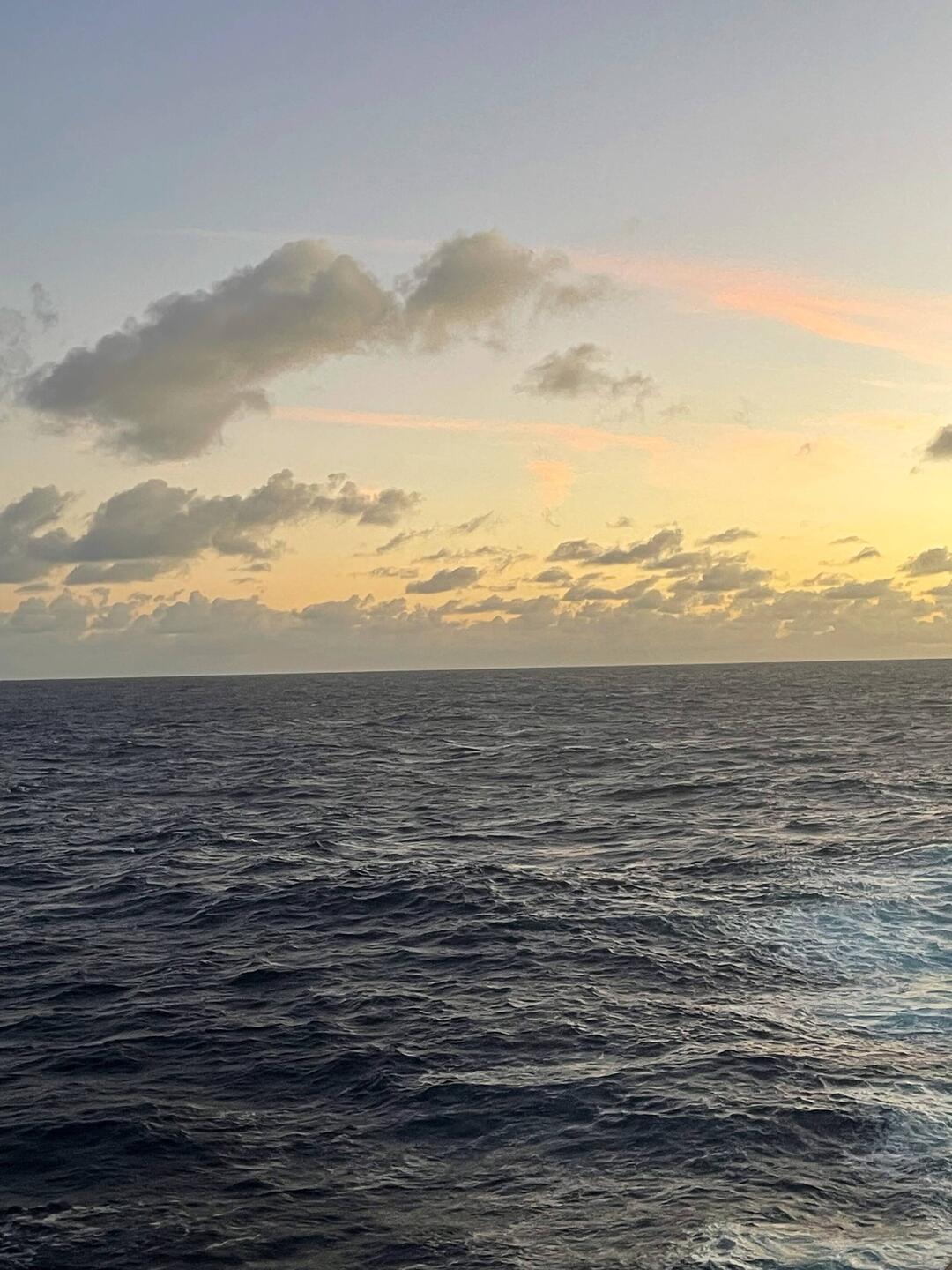 Heute ist unser dritter Seetag auf dem Weg nach Busan. Es ist der 3. Januar 2026, und kalendarisch wird es für uns keinen 4. Januar geben, da wir heute Nacht die Datumsgrenze überschreiten. AktuellLeggi altro