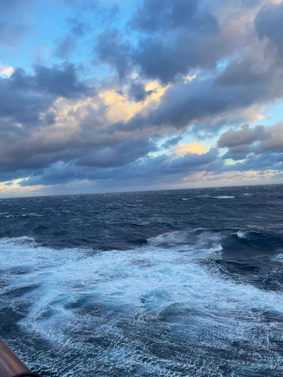 Und täglich grüßt das Murmeltier. Wir haben fast die Hälfte unserer zehntägigen Überfahrt geschafft. Das Wetter wird bereits kühler, der Seegang ist moderat, wir kommen gut voran.
