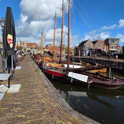 Nach einer sehr stürmischen Nacht, klart es vormittags aus. Wir nutzen die Gelegenheit und spazieren nach Spakenburg. Dort ist Markt und es gibt lecker Kibbeling. Da die Sonne rauskommt entscheidenLeer más