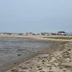 Heute ist Umzug angesagt. Ich Wechsel auf den Nachbarcampingplatz in Neuharlingersiel. Ich muss in Bensersiel um 11 Uhr runter sein und wie schon gedacht, kann ich erst um 14 Uhr einchecken. Da aberMeer informatie
