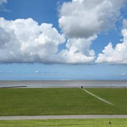 Da auch heute das Wetter mitspielt, geht die Radtour nach Norden und Norddeich. Der Hinweg verläuft inländisch der Rückweg am Wasser entlang. Nach einem Stadtbummel in Norden geht es nach NorddeichMeer informatie