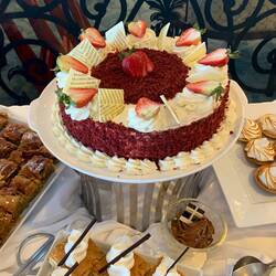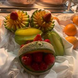The famous Oceania brunch for around the world traveler group. The variety and quality of the food were amazing.