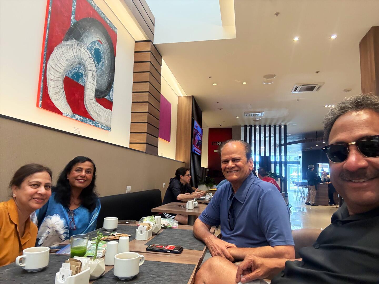 We were dropped off at the airport by our neighbor, Sharad, early enough to accommodate TSA slowdown and bad weather day. Long story short after long wait for lounge access and 3 flight delays and aRead more