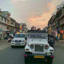 Fur den abend ist noch etwas beso aber geplant... "Jaipur by Night", für diese Tour warteten schon die Open Air Jeeps vor dem Hotel auf uns.