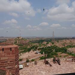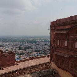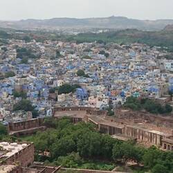 Vom majestätischen Fort blicken wir hinunter auf Jodhpur, die "blaue Stadt".